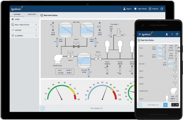 SCADA (Supervisory Control and Data Acquisition) or HMI (Human Machine Interface) systems allow operators, engineers, supervisors, and CEOs of manufacturing facilities to visualize, control, and analyze plant floor data in order to make decisions about improving processes.